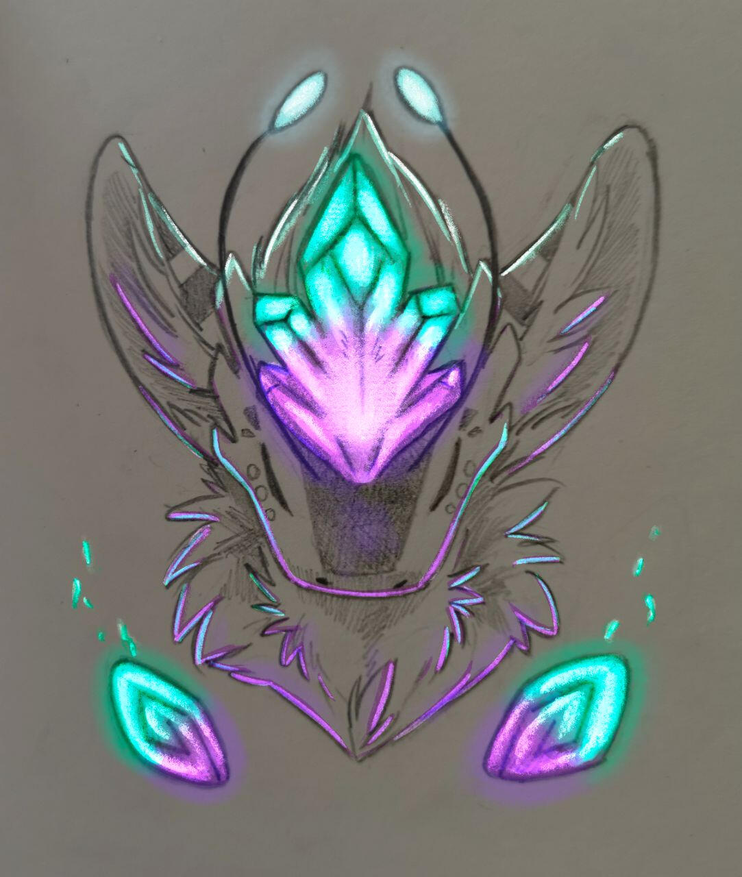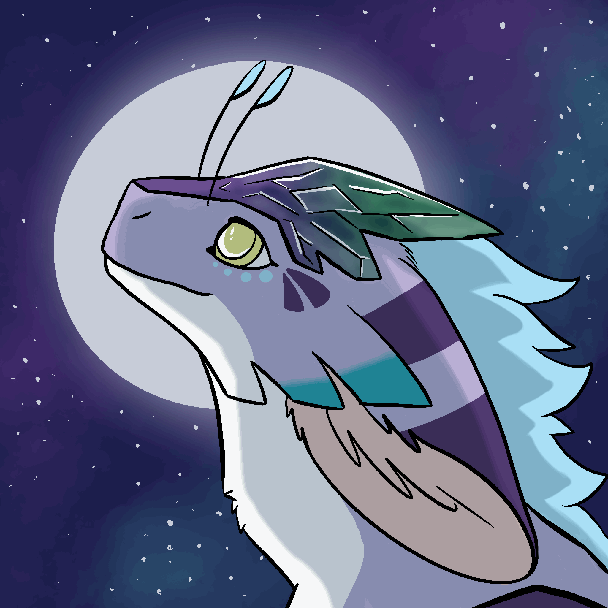 Astrakins are genderless. They can however go by any pronouns they prefer.When a Astrakin dies, they go to the quartz cave and find a spot. They lose their color and slowly turn into a white piece of quartz that grows to later be re-purposed to create new life.Astrakins have a crystal on their shoulders that can summon crystal wings. These wings are not for flying. They are used for gliding if they need to travel from steep locations.Astrakins can use their antennae as a nightlight in the dark to find their way, altho they have night vision, sometimes it might come in handy. They will also communicate with the antennae on their head. Moving them, signing to other Astrakins.They are nocturnal. Meaning that they are most active at night.Their crystals glow when they meditate, because of the full moon its moonlight. It charges their power and rediates it.For any questions contact Eclipticartz by the links below!