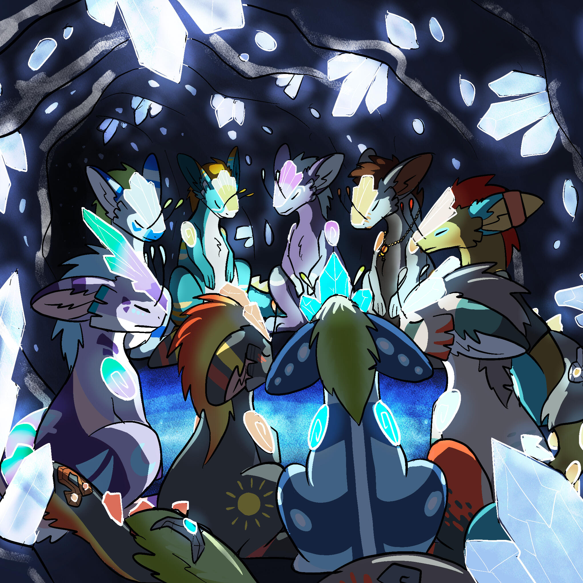 All Astrakin are cut from the same cloth, their behaviors are consistent across all tribes yet every sign element has their own unique ways of living.Every full moon all Astrakin gather at the cave, created by the meteorite impact that gave their species life, to honor those who came before them. No matter their signs, while at this beacon of serenity they’re all one and the same. During this night they meditate, holding onto one another with their tails for both comfort and stability. They peacefully wait as the moon shines upon them and recharges their energy, though this ritual also has a somber side, some elders wish for their last moments to be spent with the others. As all tribes get ready to leave, they’ll stay behind. Laying down in the cave, falling asleep one last time as they return to the state they once were born from, a colorless quartz crystal. The gems wait until the next full moon when a Nova may take that gem and create new life, but only if the stars align to paint their sign in the sky.